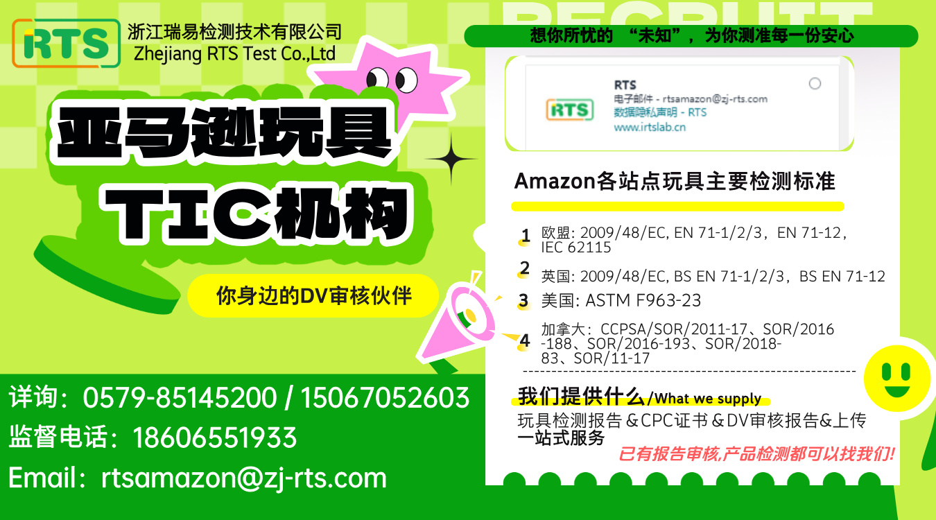 在此,我们为广大卖家带来一个重大利好消息:RTS 瑞易检测正式成为亚马逊 TIC 机构,今日 DV 实验室项目已正式上线!